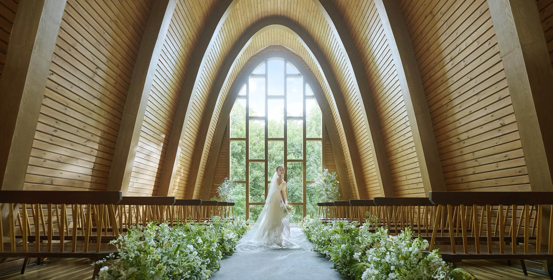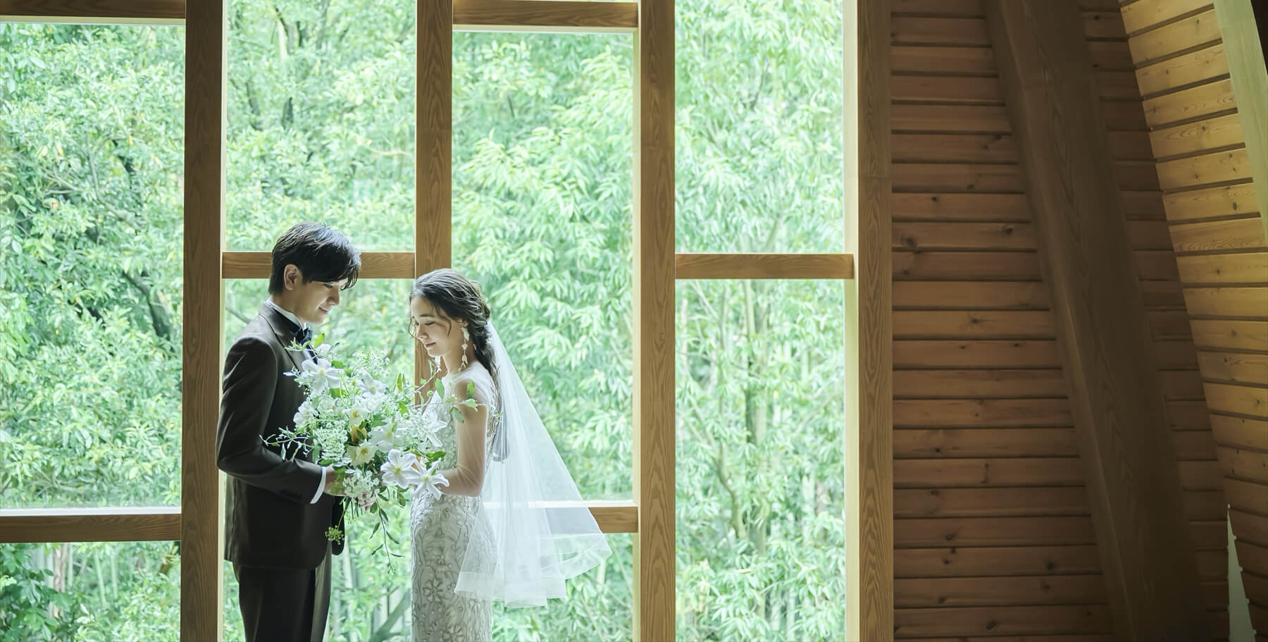 木の温もりと緑に包まれたチャペルと一軒家を舞台に、