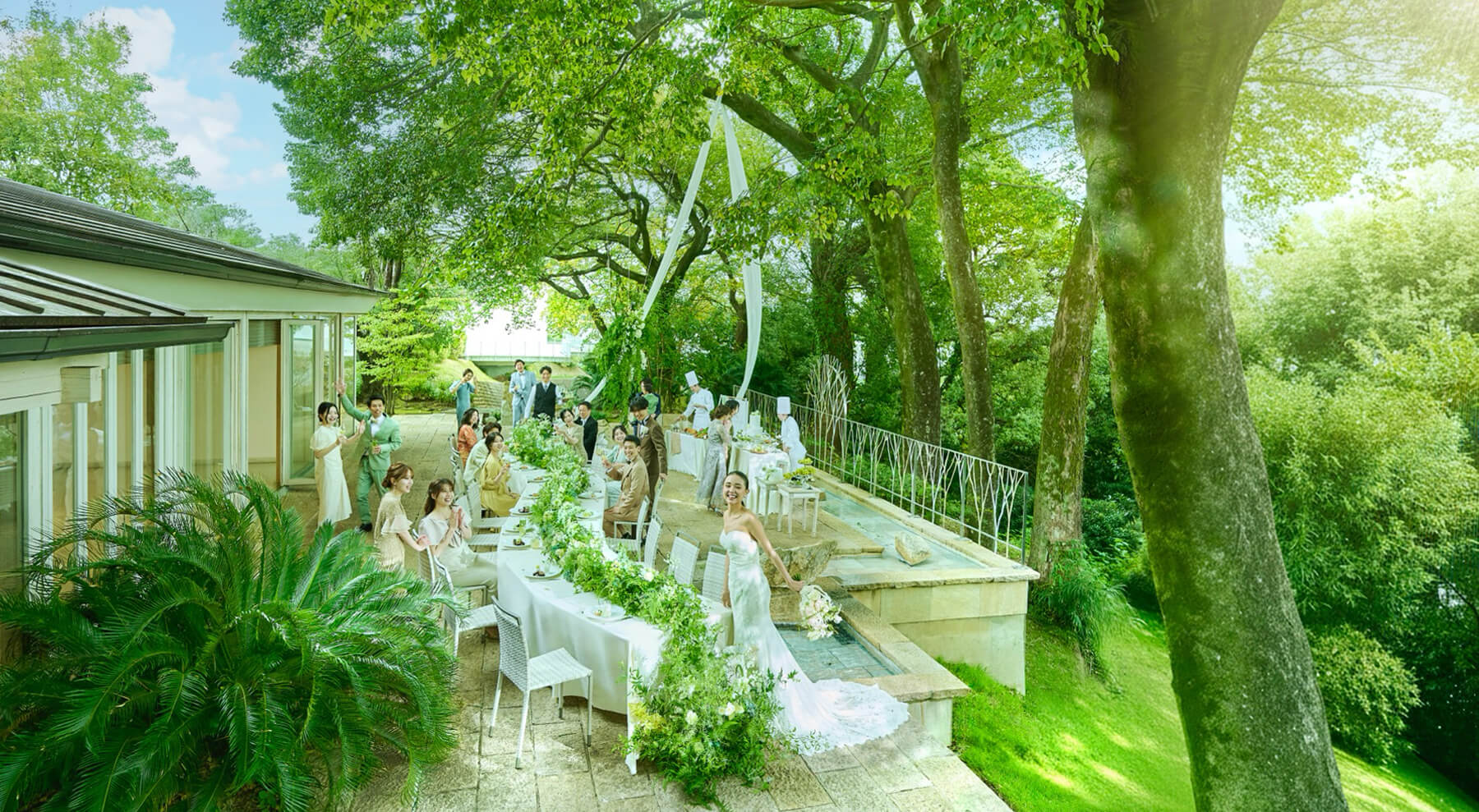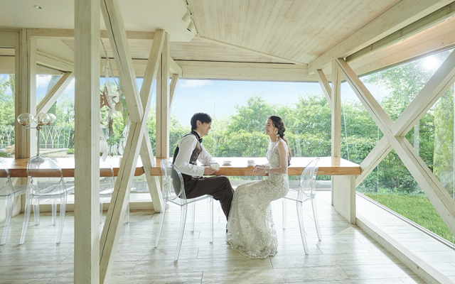 木の温もりと緑に包まれたチャペルと一軒家を舞台に、